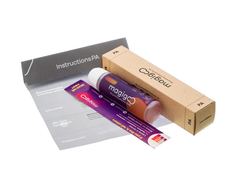 Společnost Magigoo má sídlo na ostrově Malta a specializuje se na adhezivní přípravy pro 3D tisk. V roce 2018 uvedla na trh novou edici Magigoo Pro, která obsahuje adhezivní přípravy určené pro průmyslové materiály jako např. PP, PC, nylon nebo flex. .