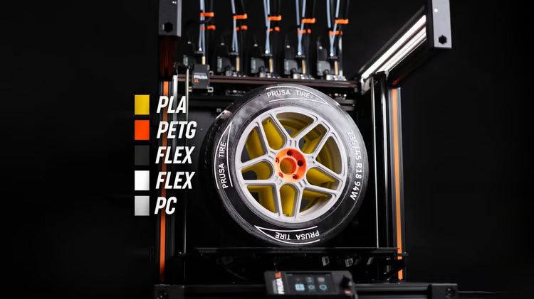 Podporované materiály PLA, PETG, Flex, PVA, PC, PP, CPE, PVB a pokud použijete Original Prusa Enclosure s doplňkovým filtračním systémem tak také ABS, ASA, HIPS nebo PA