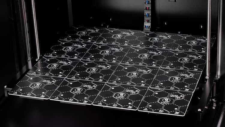 XL je vybavena modulární segmentovou vyhřívanou podložkou, ovládanou její vlastní základní deskou, která posouvá spolehlivost a kvalitu tisku modelu XL ještě dál. Podložka se skládá ze 16 individuálně ovládaných dlaždic, které jsou navržené tak, aby dokázaly kompenzovat teplotní deformaci, ke které jinak často dochází u tiskáren s jednou velkou vyhřívanou podložkou. Spolu s našimi ověřenými oboustrannými tiskovými pláty tak máte vždy k dispozici ten nejlepší povrch pro tisk vašich materiálů. Navíc dovede vypnout nepoužívané dlaždice a šetřit tak energií.