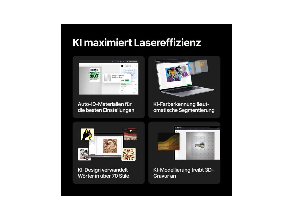 - Součástí dodávky je software: xTool Creative Space – zdarma a kompatibilní s Windows, macOS, iPadOS, iOS a Androidem.