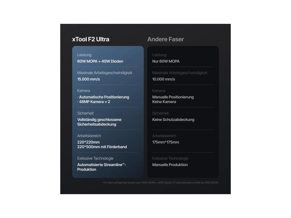 Objevte xTool F2 Ultra Laser – inovativní vysoce výkonné zařízení s integrovaným 60W MOPA vláknovým laserem a 40W diodovým laserem . Ať už chcete vytvářet profesionální gravírování do kovu, kreativní řezy do dřeva nebo barevné vzory na nerezové oceli – F2 Ultra nabízí nejvyšší úroveň přesnosti, rychlosti a všestrannosti.