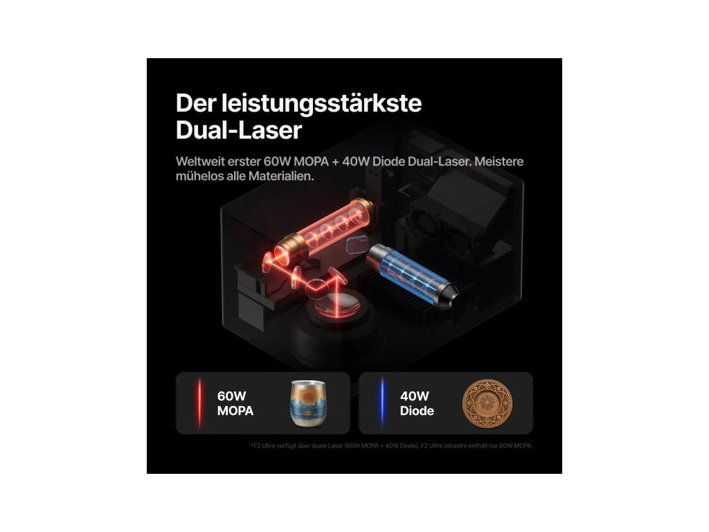 Laserové umění | F2 Ultra: 60W MOPA laser + 40W diodový laser F2 Ultra (jednoduchá verze): 60W MOPA laser |